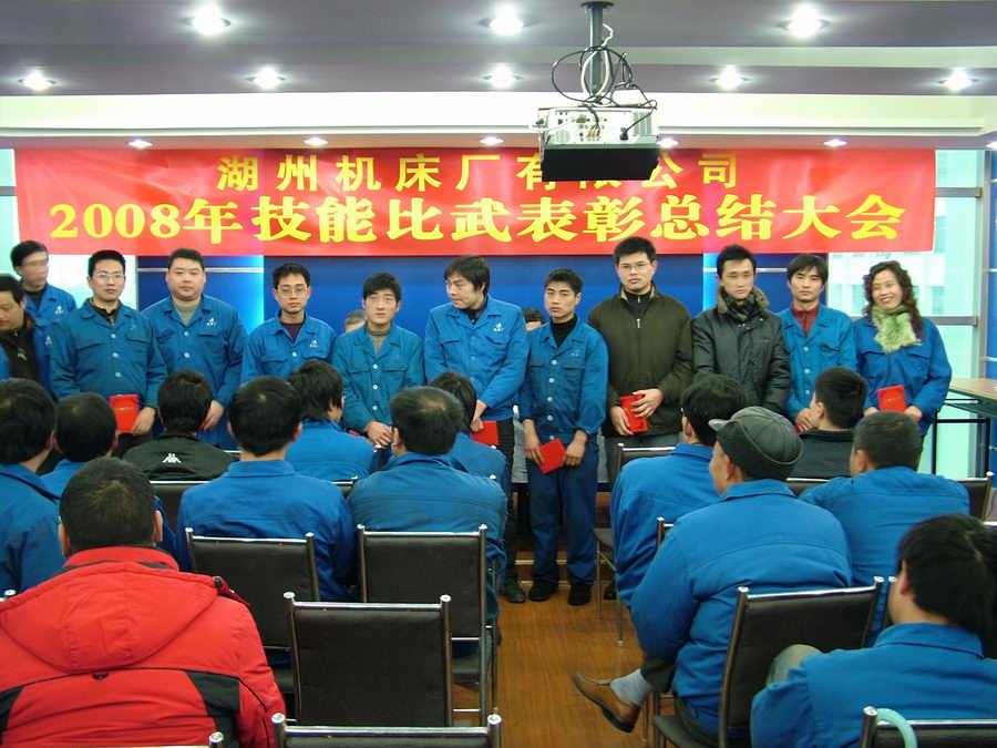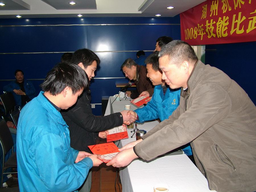 我公司自2007年開(kāi)展各個(gè)工種技術(shù)比武后,08年又有新的擴(kuò)展,參加工種擴(kuò)大到七大工種:車工、鉆工、鏜工、行車工、電焊工、電工(AB類)、裝配鉗工(AB類),總參賽人數(shù)達(dá)183人。經(jīng)5月、10月和年度的綜合排名,共有46人獲獎(jiǎng),從獲獎(jiǎng)的人員分布來(lái)看,中年員工占1/3,青年員工2/3,這說(shuō)明青年員工已在不同崗位上挑起了擔(dān)子。圖為公司領(lǐng)導(dǎo)向“技術(shù)帶頭人”、“技術(shù)能手”和“操作能手”頒獎(jiǎng)。